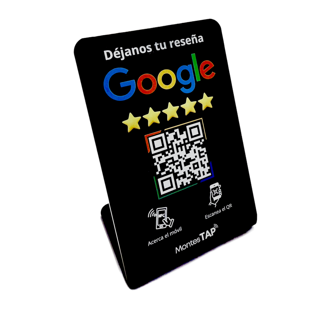 El chip NFC para un toque rápido, el QR como respaldo. Ningún cliente se queda sin poder dejar su reseña.